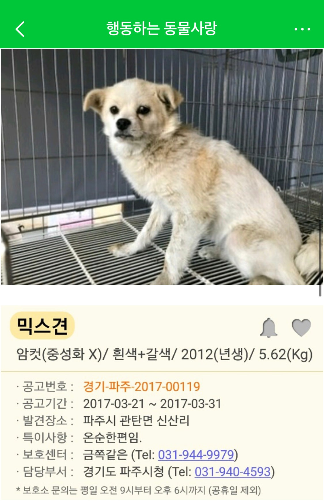 그리고 10일간의 공고 기간동안 주인이 나타나지 않으면 안락사의 대상이 되곤하죠.