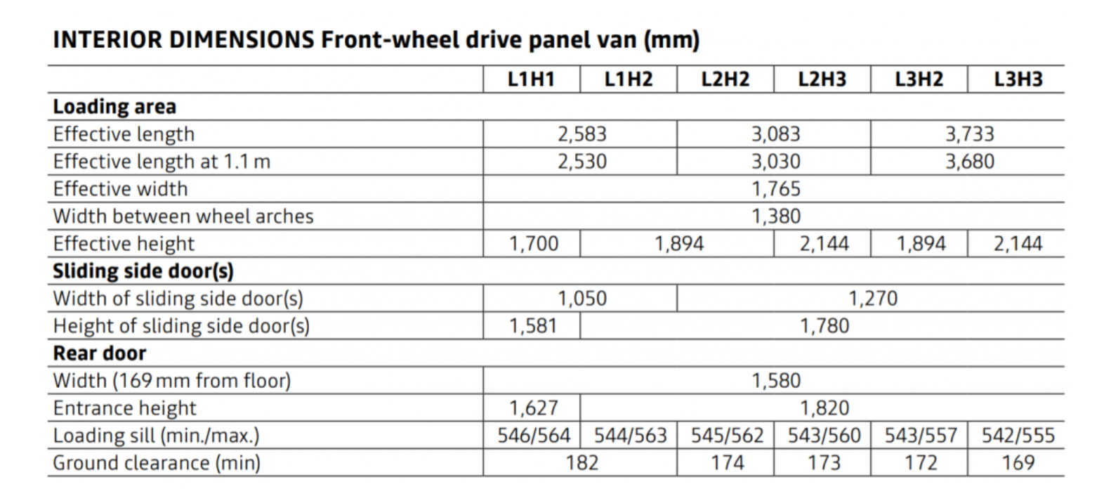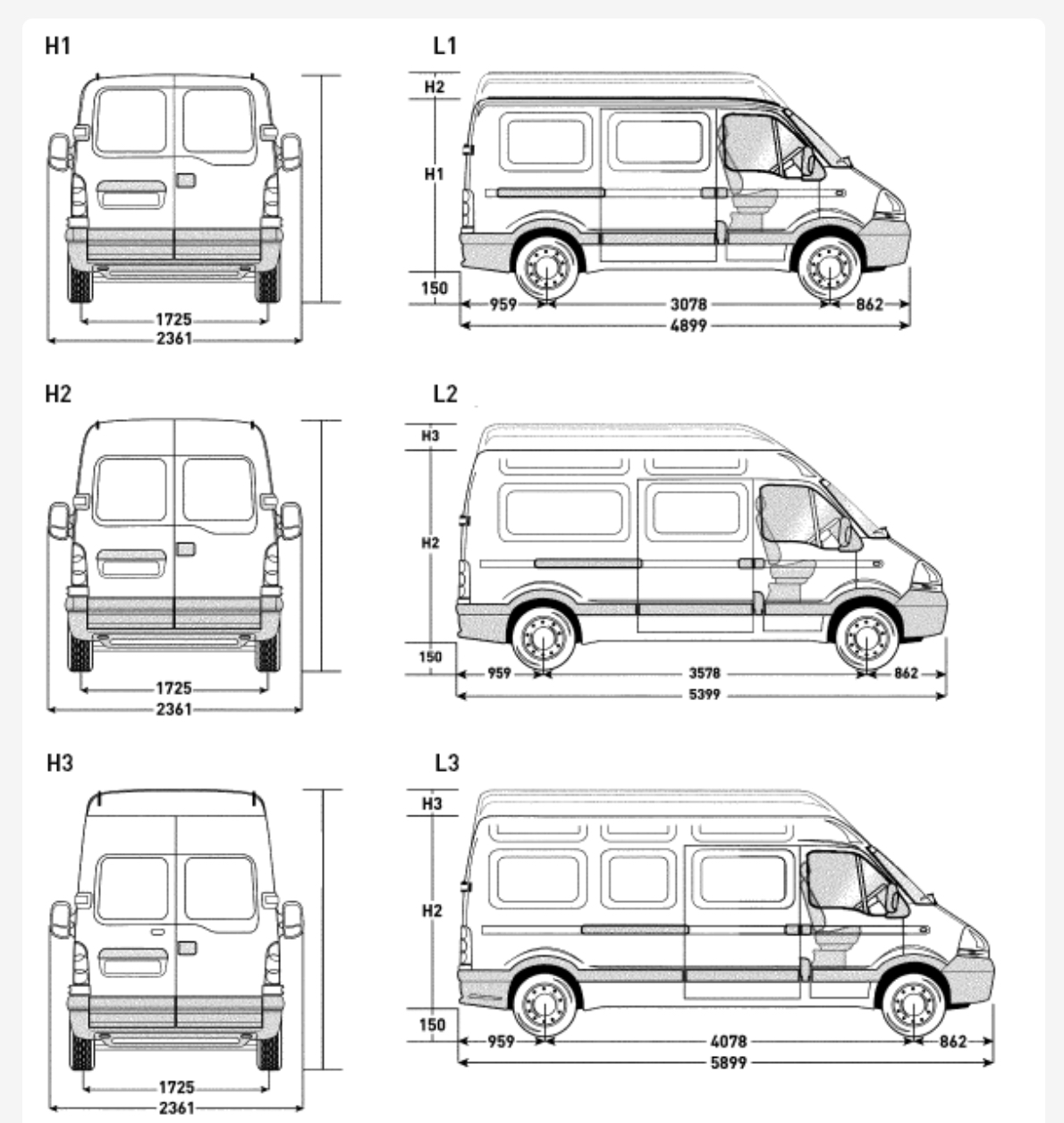 국내에 들어오는 르노이 '마스터'라는 모델이 있는데 S모델(스탠다드 또는 숏바디)이 L1H1에 속하고,
