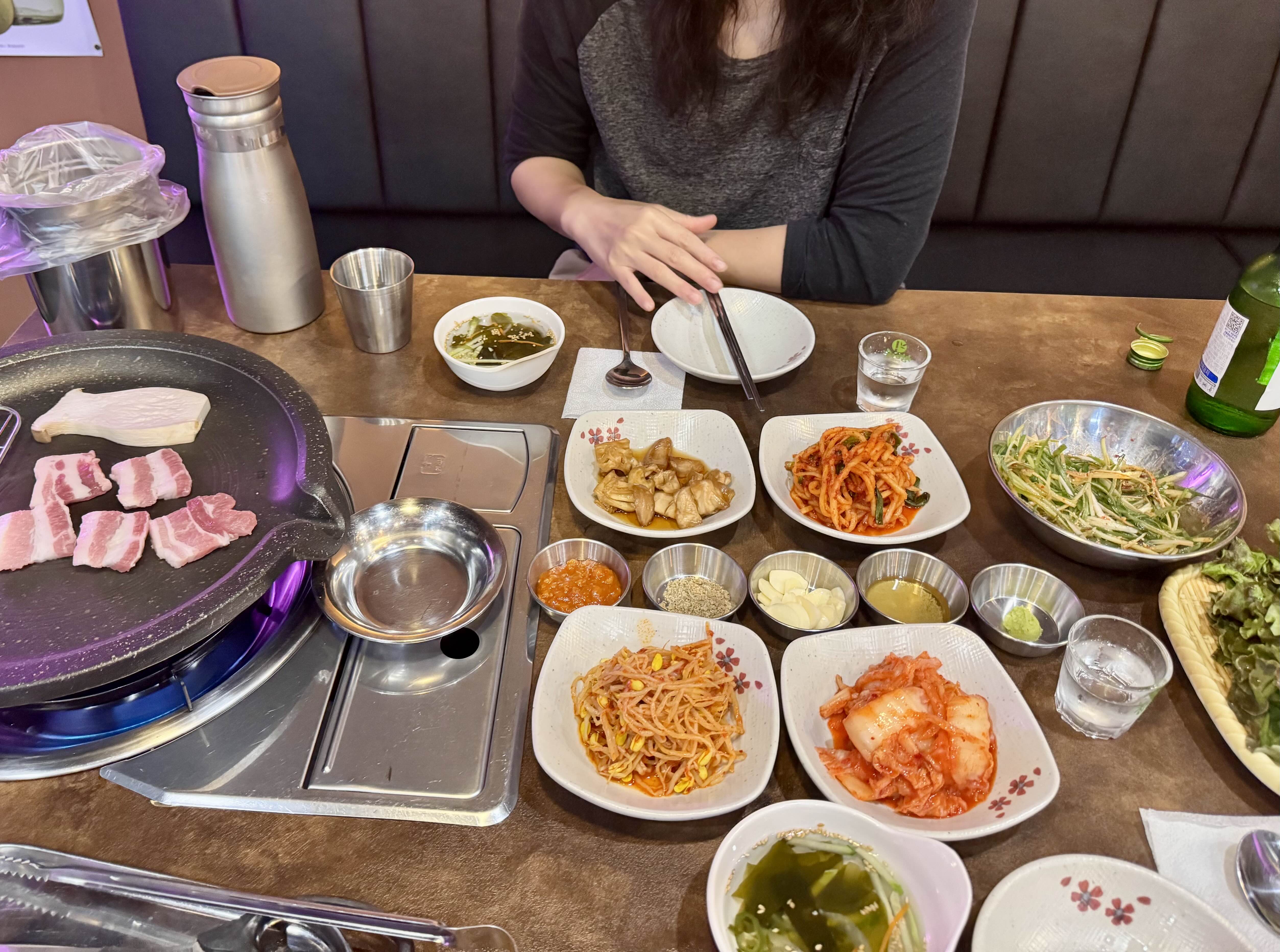 저녁이 되자 집 앞 고깃집으로 갔다.