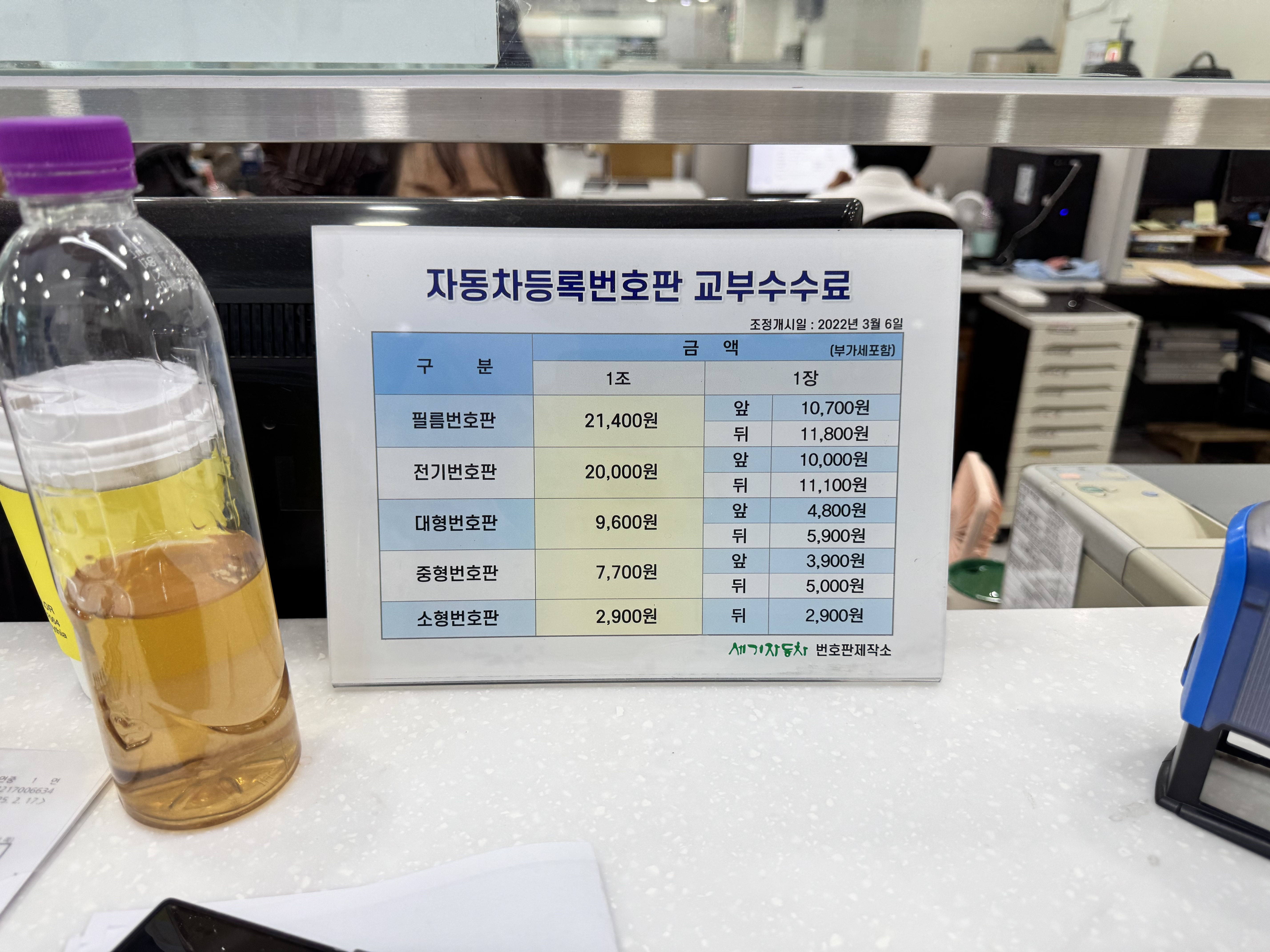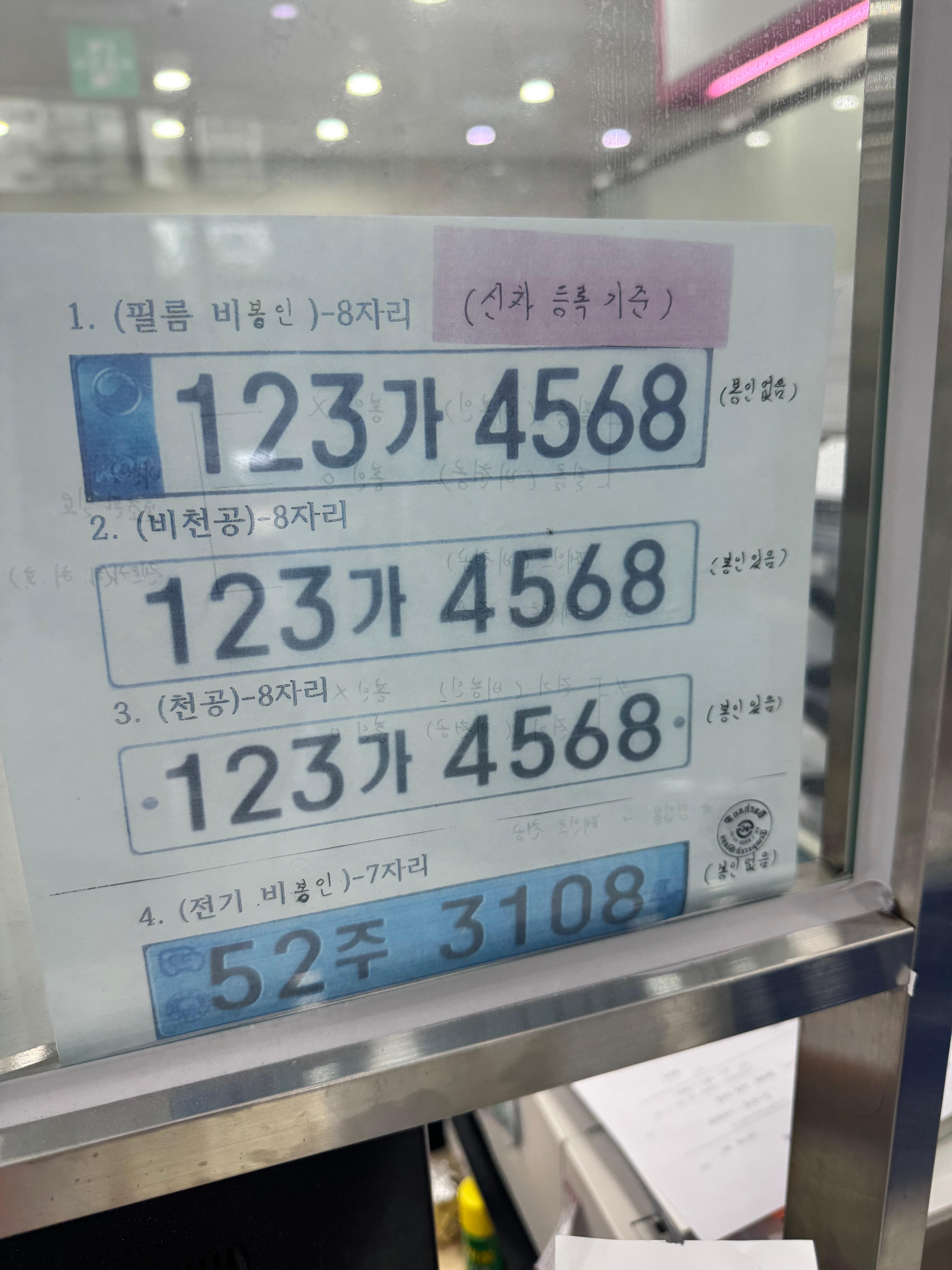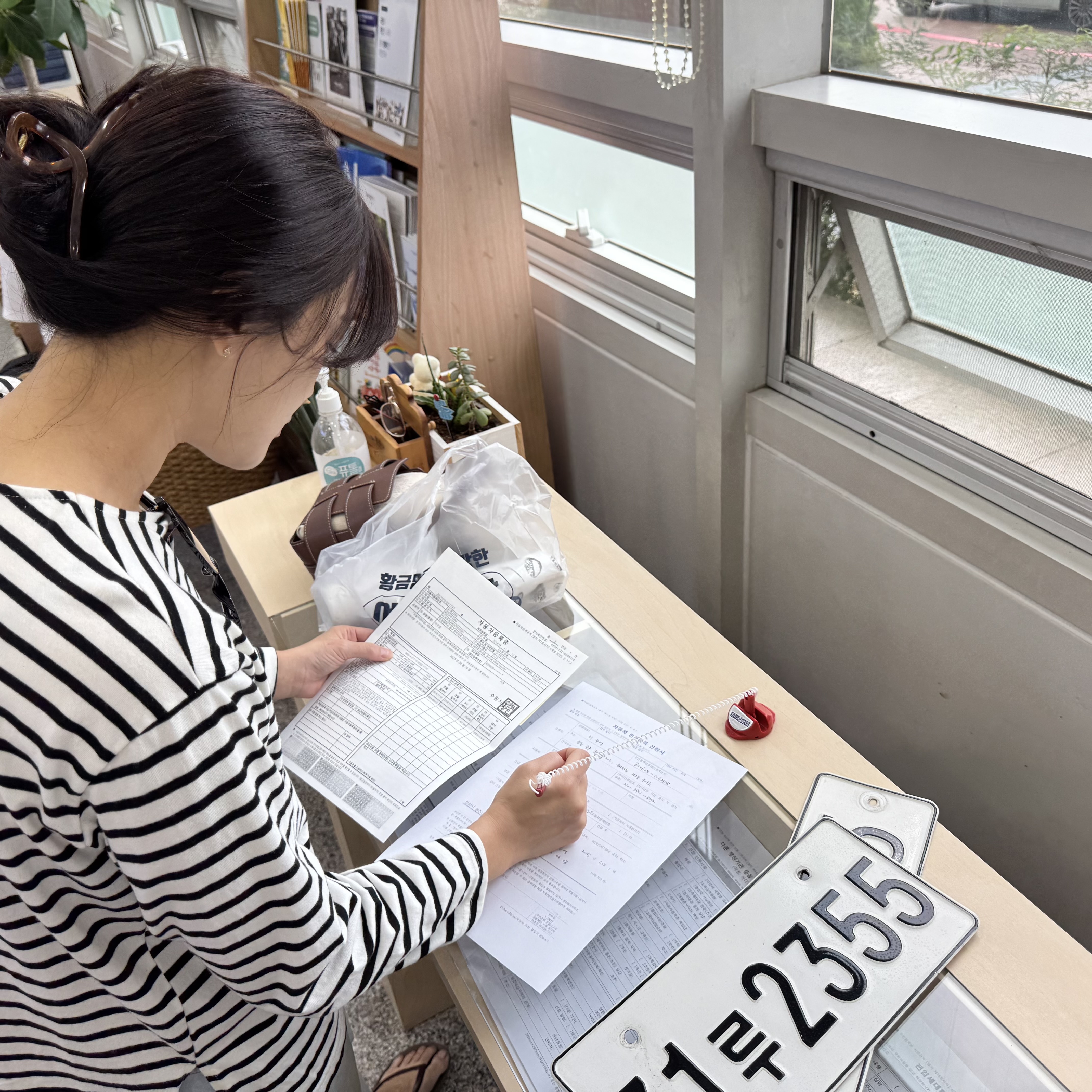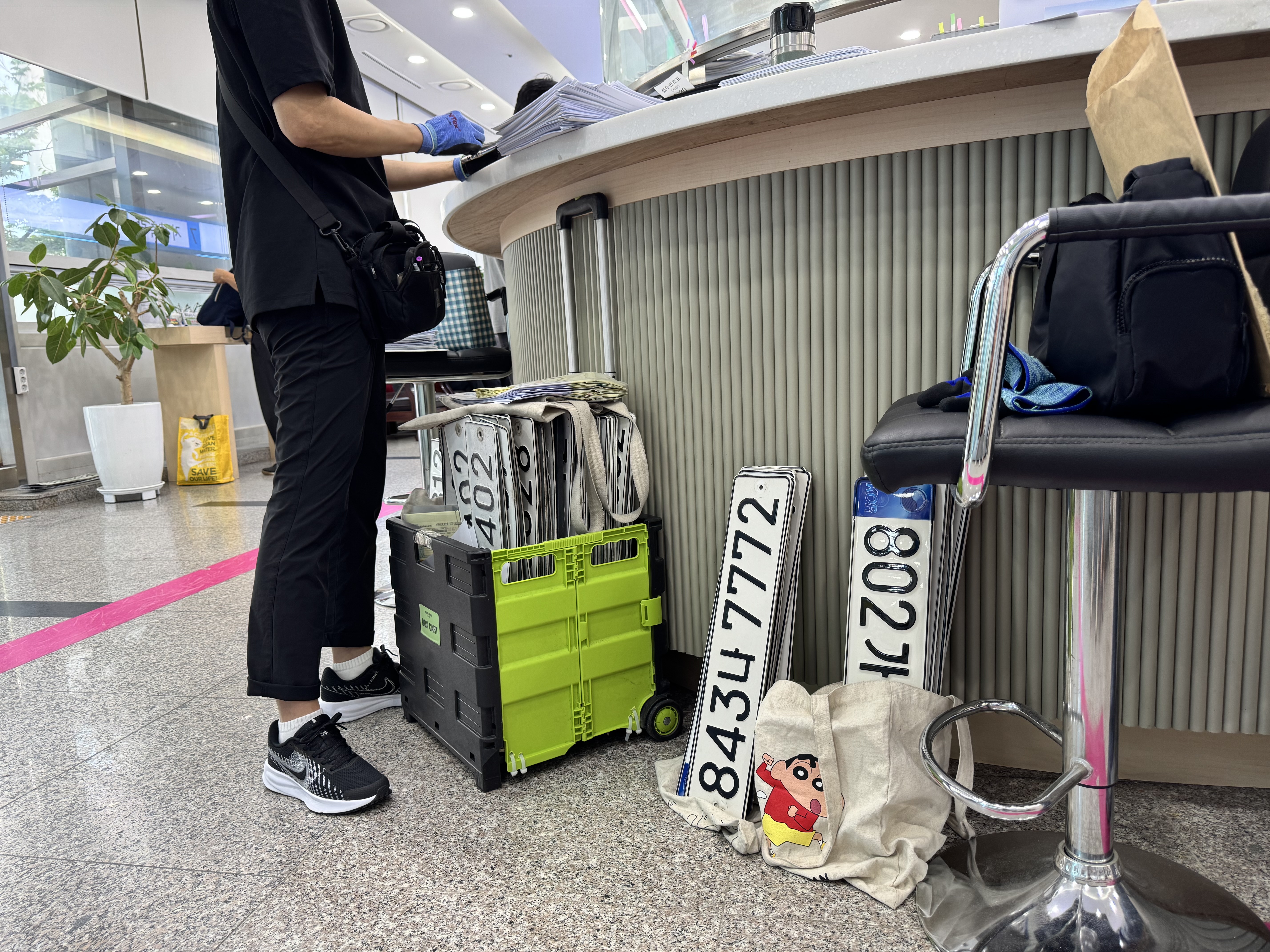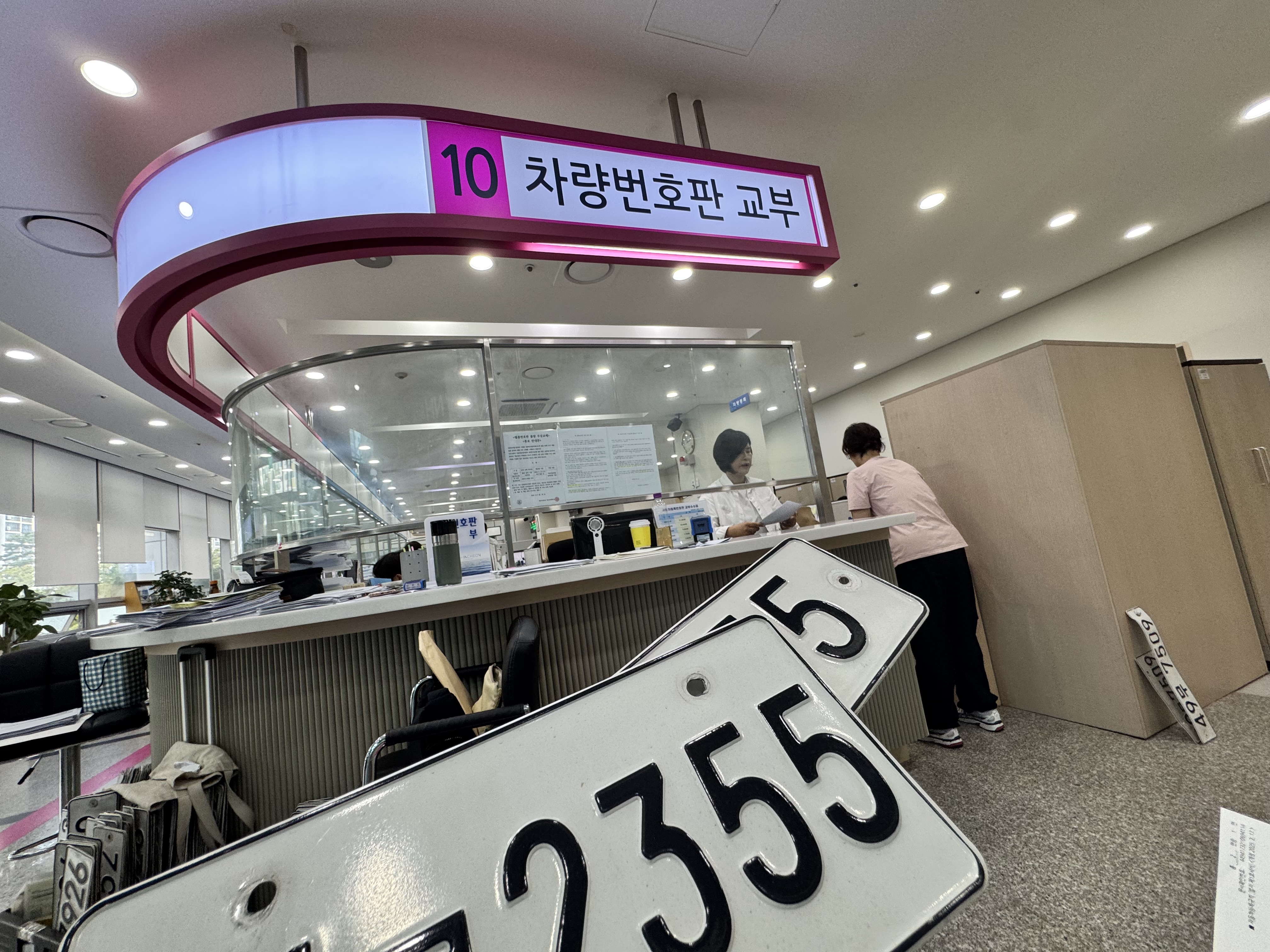 자동차 매매단지와 수출업체에서 온 몇몇의 이모님들이 바구니 한가득 번호판을 가져와서 1시간가량 기다려야 했습니다.