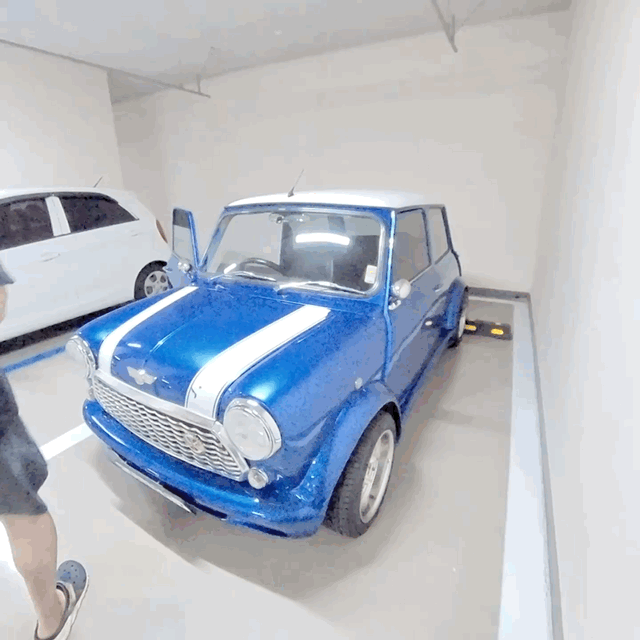 지하주차장 구석에 저의 미니만을 위한 자리를 찾았습니다.
