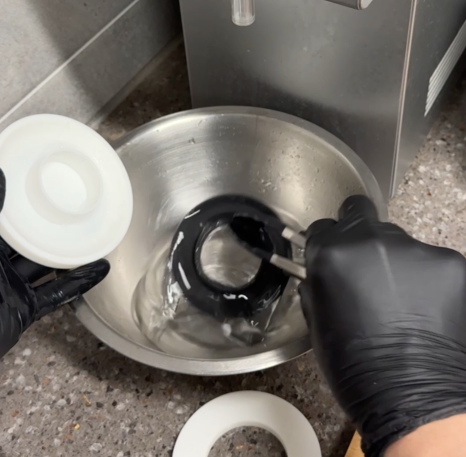 뜨거운 물에 잠시 담갔다가 몰드로 눌러서 상부에 부드러운 곡면을 만들어냈습니다.