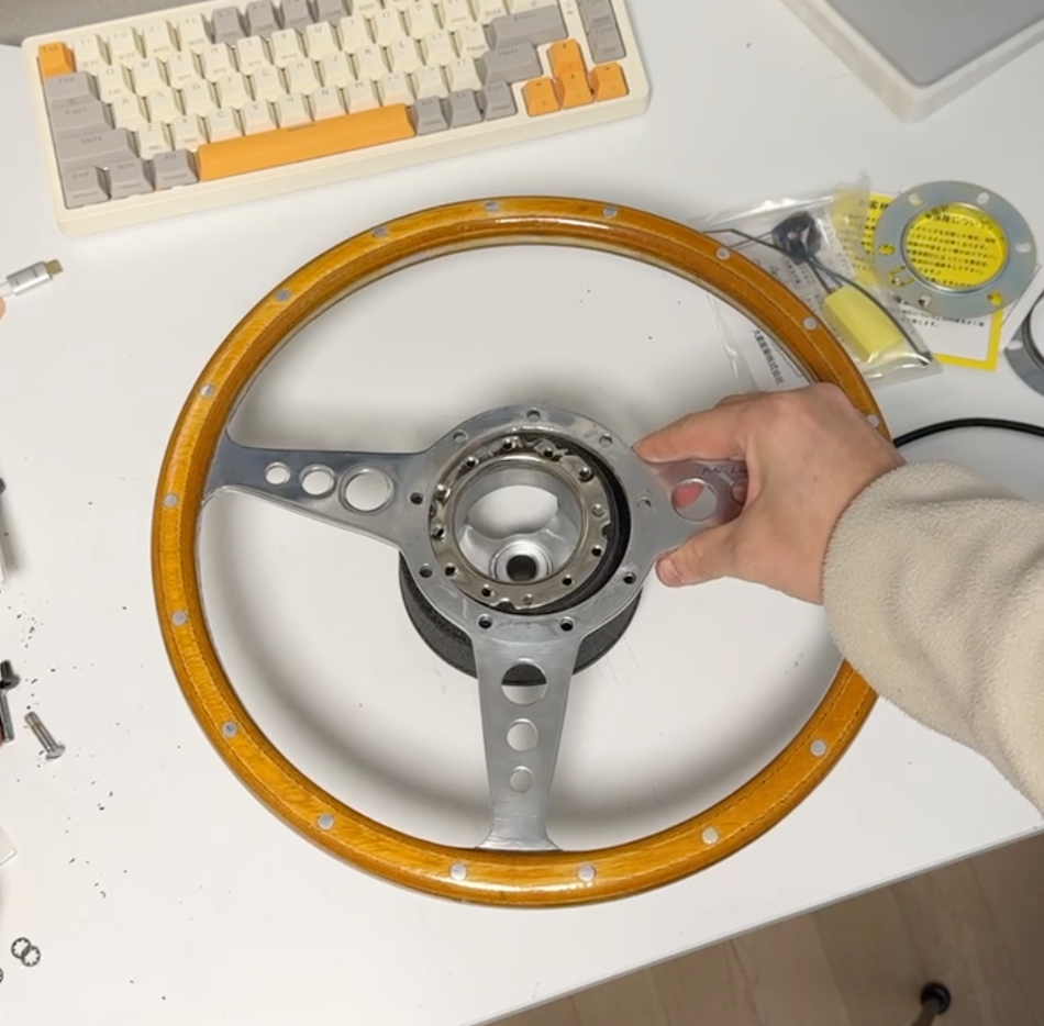 모토리타 핸들은 중앙에 혼버튼이 없기 때문에 위와 같은 플라스틱 뚜껑을 끼워 덮어 줍니다.