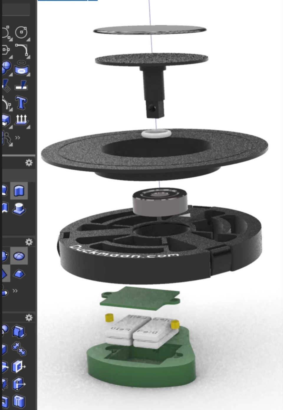 중앙에는 배어링이 고정되고, 그 아래에 무게추를 두었습니다.