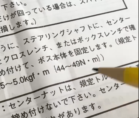 휠너트를 조이는 규정토크는 44~49N•m였습니다.