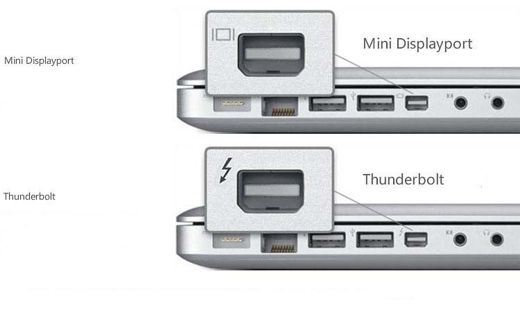 이번에 썬더볼트 3가 usb-c와 호환이 되듯 썬더볼트 2도 mini dp 포트와 호환이 되도록 동일한 모양의 단자를 가지고 있기에