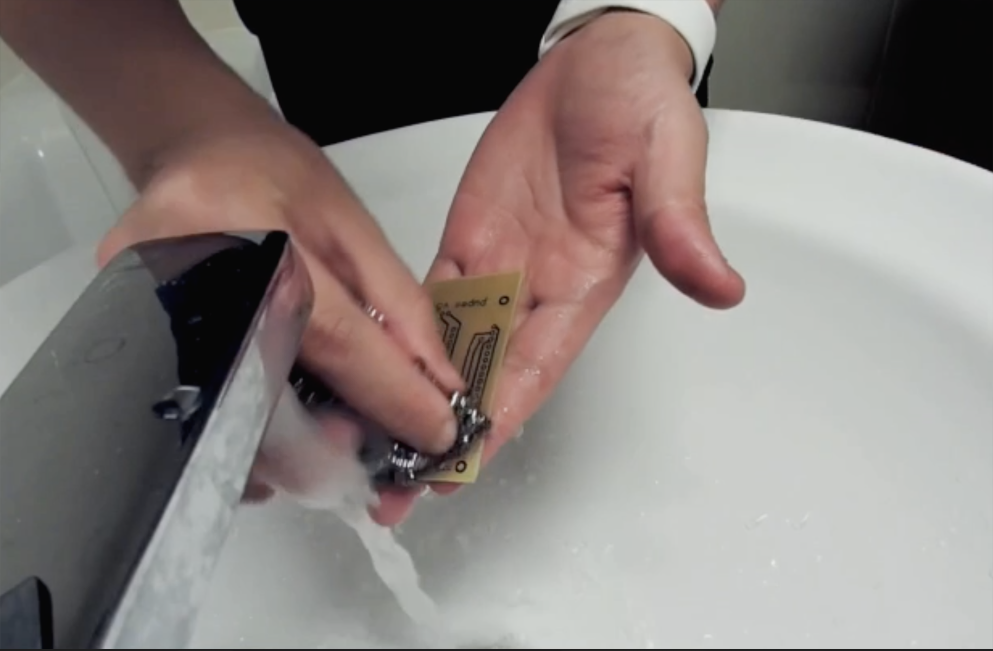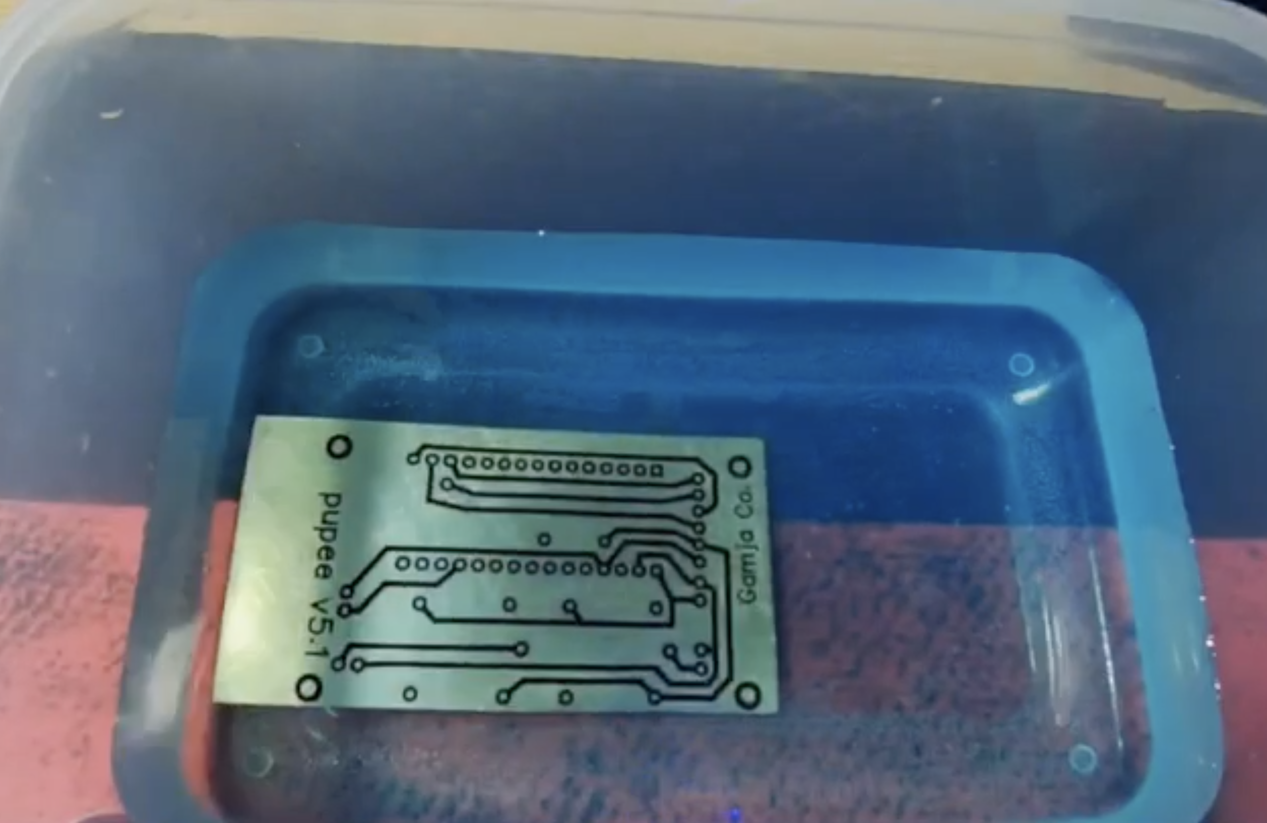 11. 에칭액에 동판을 넣고 기다리면 서서히 동판이 녹기 시작한다.