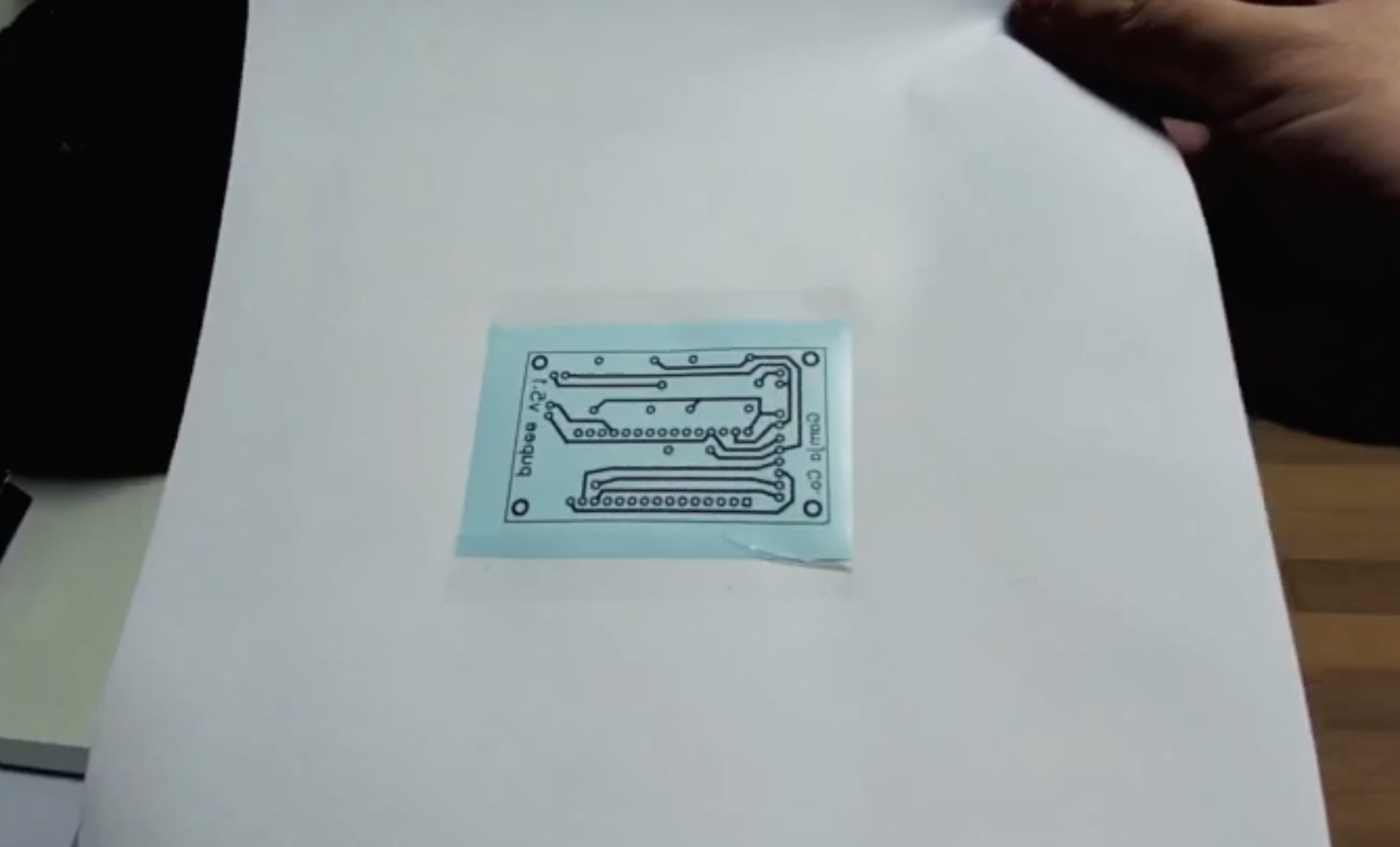 8. 동판이 뜨거우므로 조심하며 시트지를 제거하면 동판에 토너가 잘 옮겨 붙은것을 알수 있다. 여기까지 성공했다면 거의 다 한거나 다름없다.