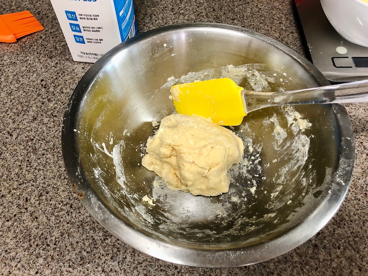 남은 계란물을 나중에 스콘 윗면에 바를거예요.