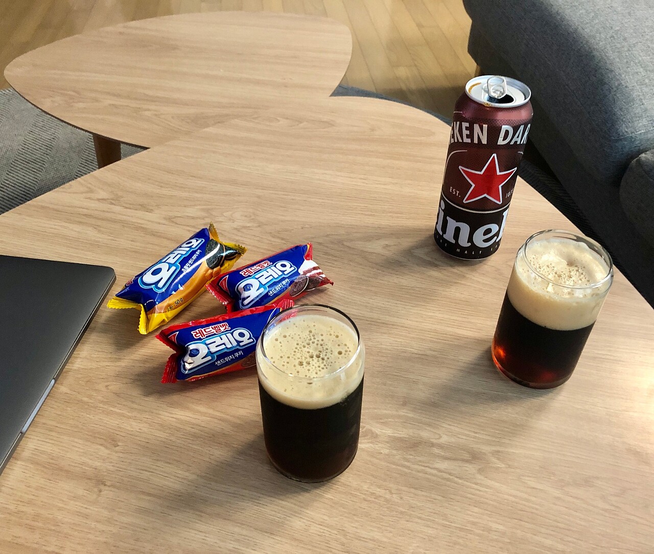 오후에는 맥주 한잔하고 낮잠을 잤습니다.