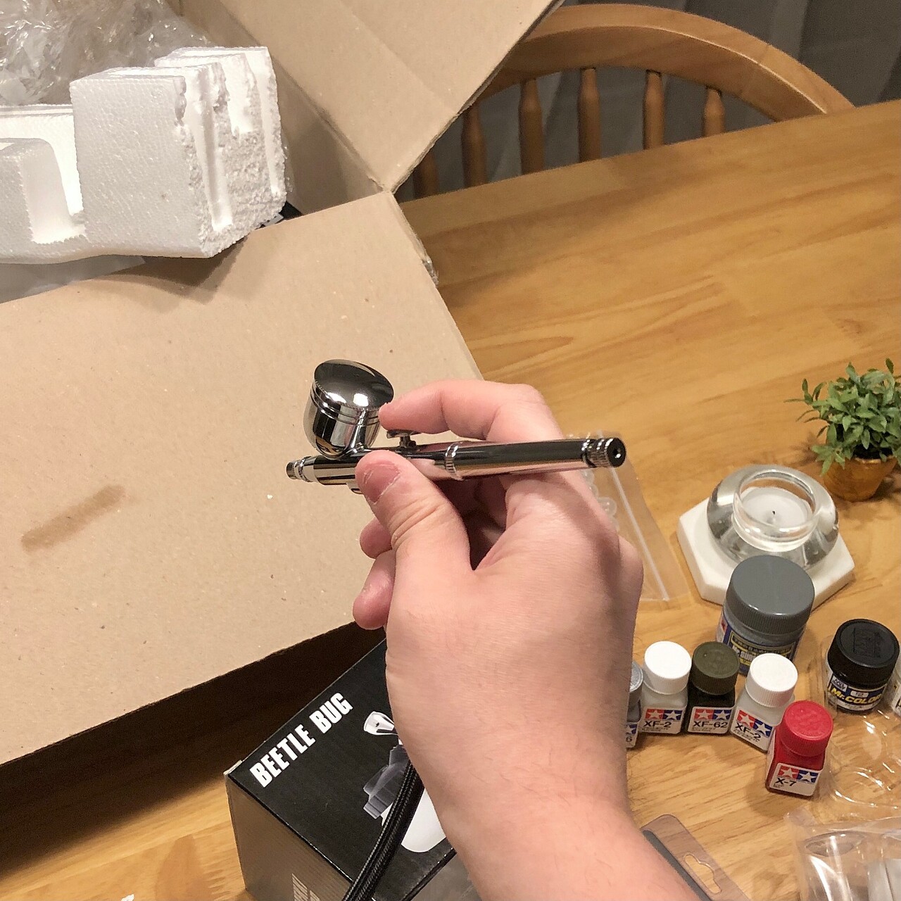 에나멜을 붓에 발라서 한땀한땀(?) 칠하다 결국 에어브러시의 필요성을 느꼈었거든요.