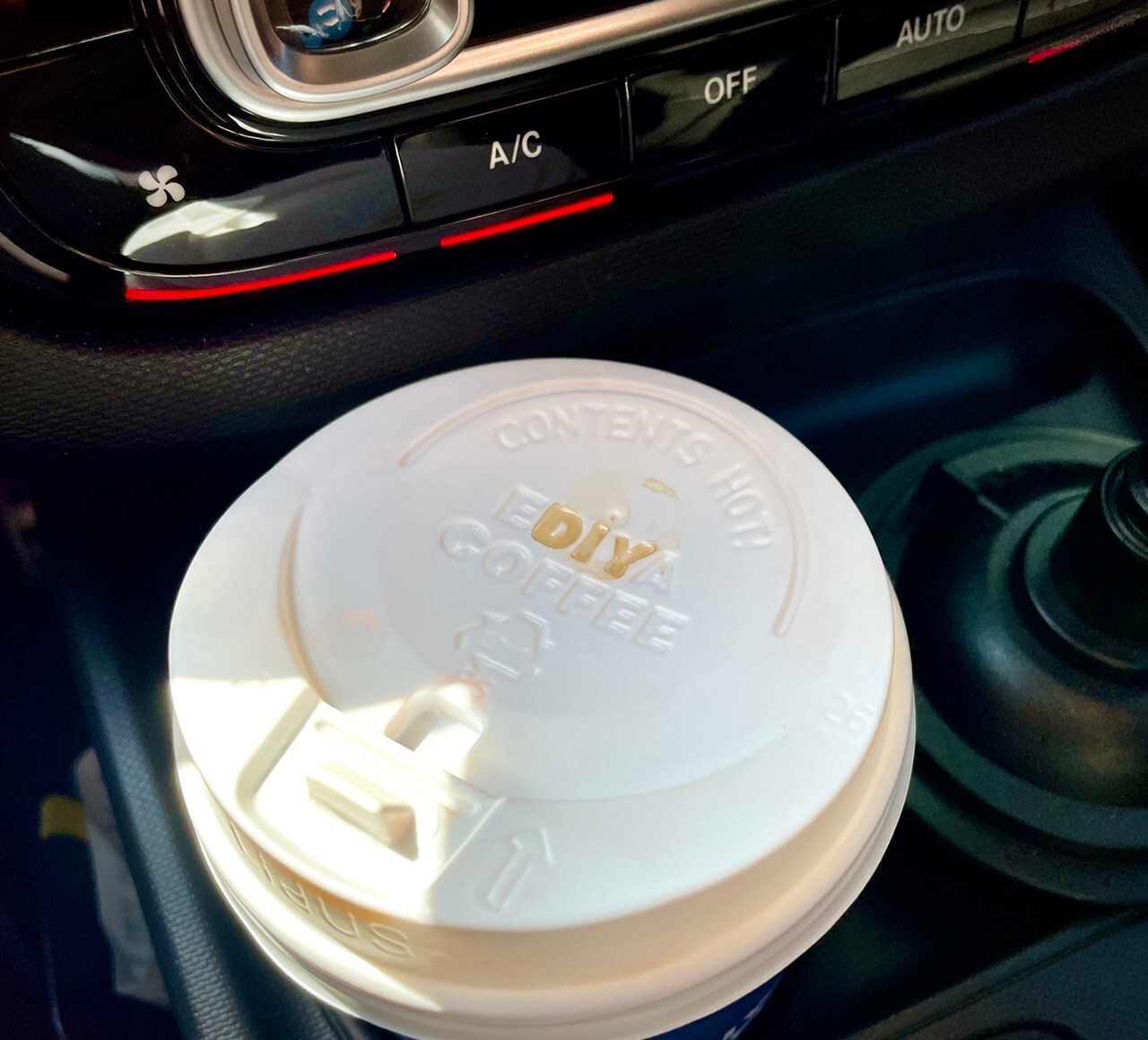 컵뚜껑에 구멍으로 커피가 새어나왔어요.