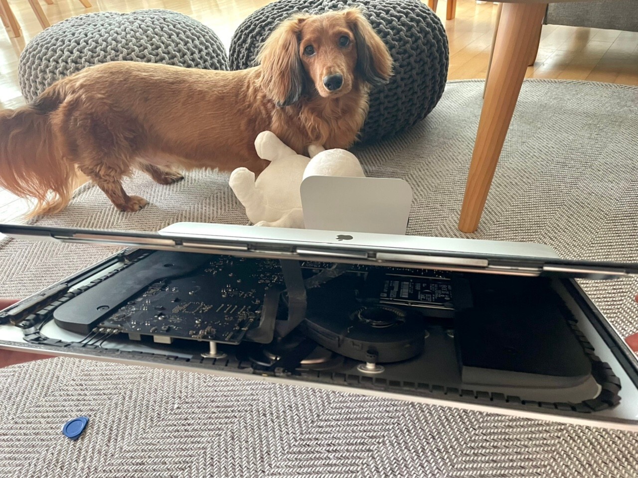 깔끔한 디자인을 중시했던 우리의 잡스옹께서 나사 대신 양면테이프로 모니터 유리를 붙여두셨어요.