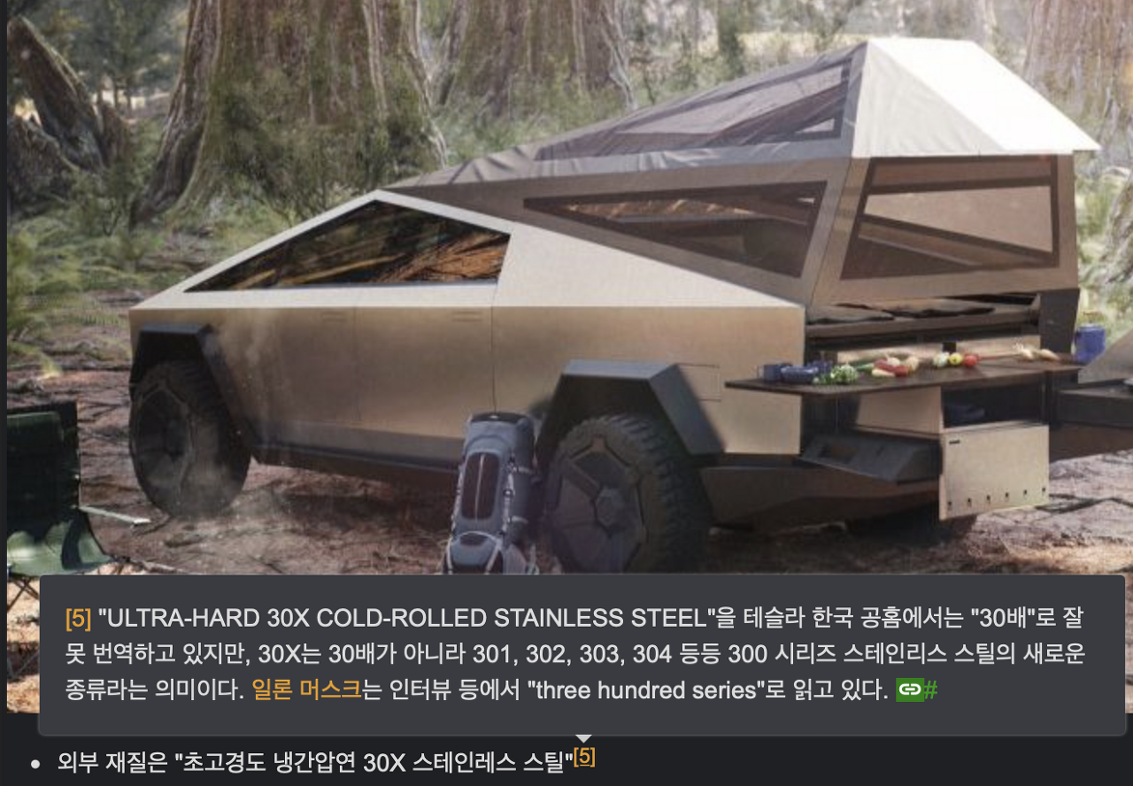 싸이버트럭의 30X 스테인리스는 30배가 아니다!!