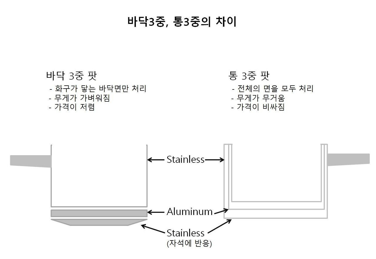 그리고 그 가운데는 열전도 효율을 높이고 골고루 열이 전달되도록 알루미늄을 사용하는데요,