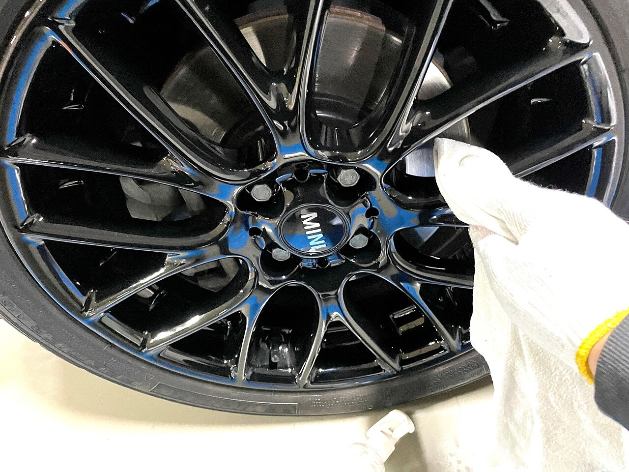 그리고 타이어 광택제를 발라주면 바퀴에 할 작업은 끝입니다.