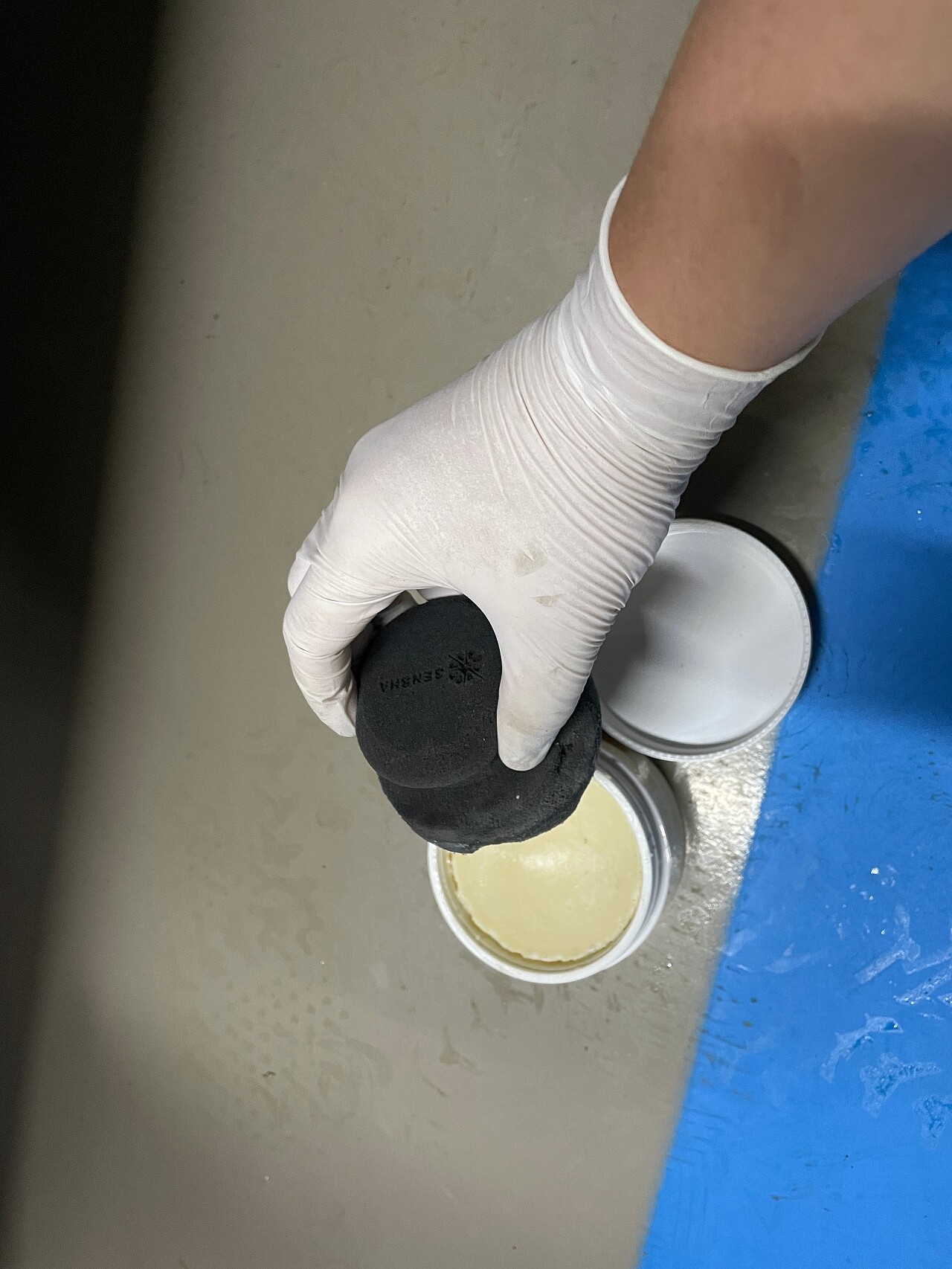 왁스를 바르고 버핑을 시작하기 전에 담패를 한대 피웁니다.