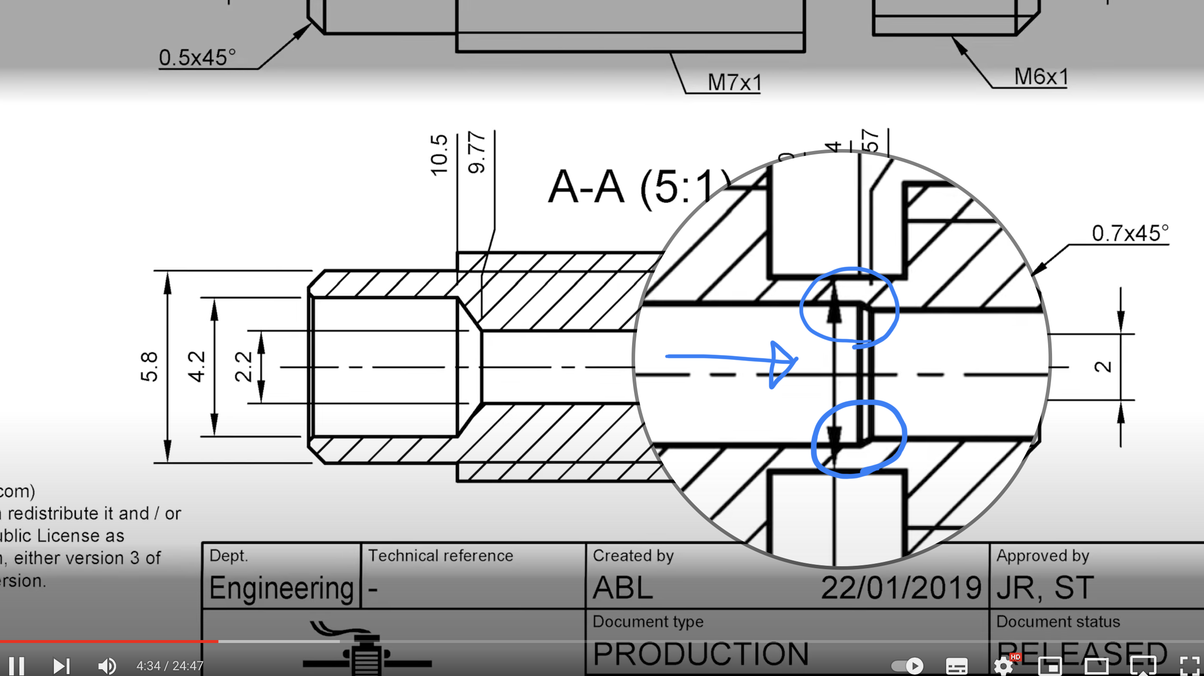 그리고 중간의 파란색 원으로 표시한 부분에서 2.2mm 직경이 2.0mm로 좁아지는 것을 볼 수 있습니다.