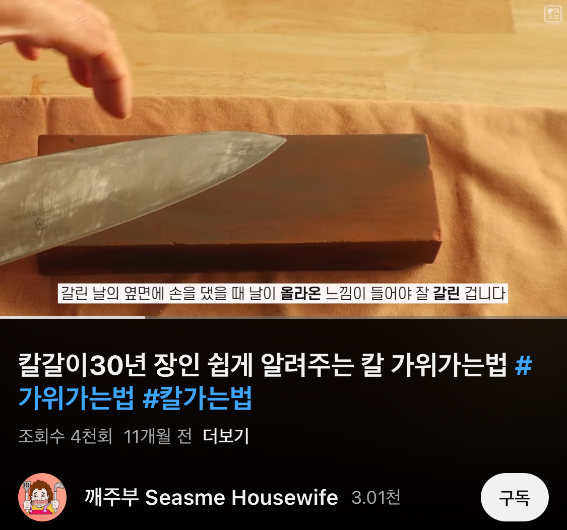 아내는 ‘어쩜 저렇게 쓸데없는 거에 진심일까..’라며 저의 칼 가는 모습을 사진으로 담아갔습니다.
