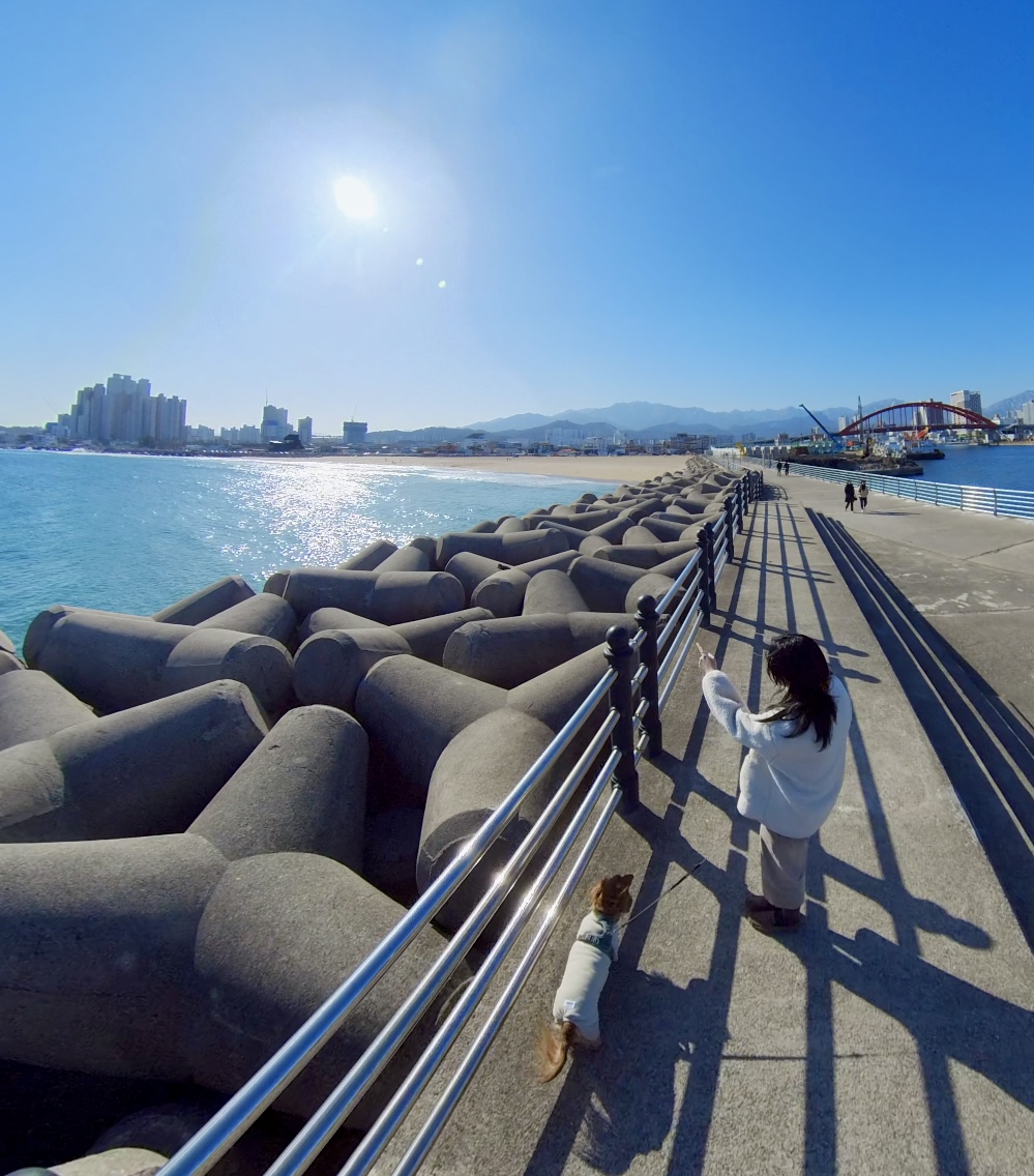 감자를 데리고 동해 바다에 왔다.