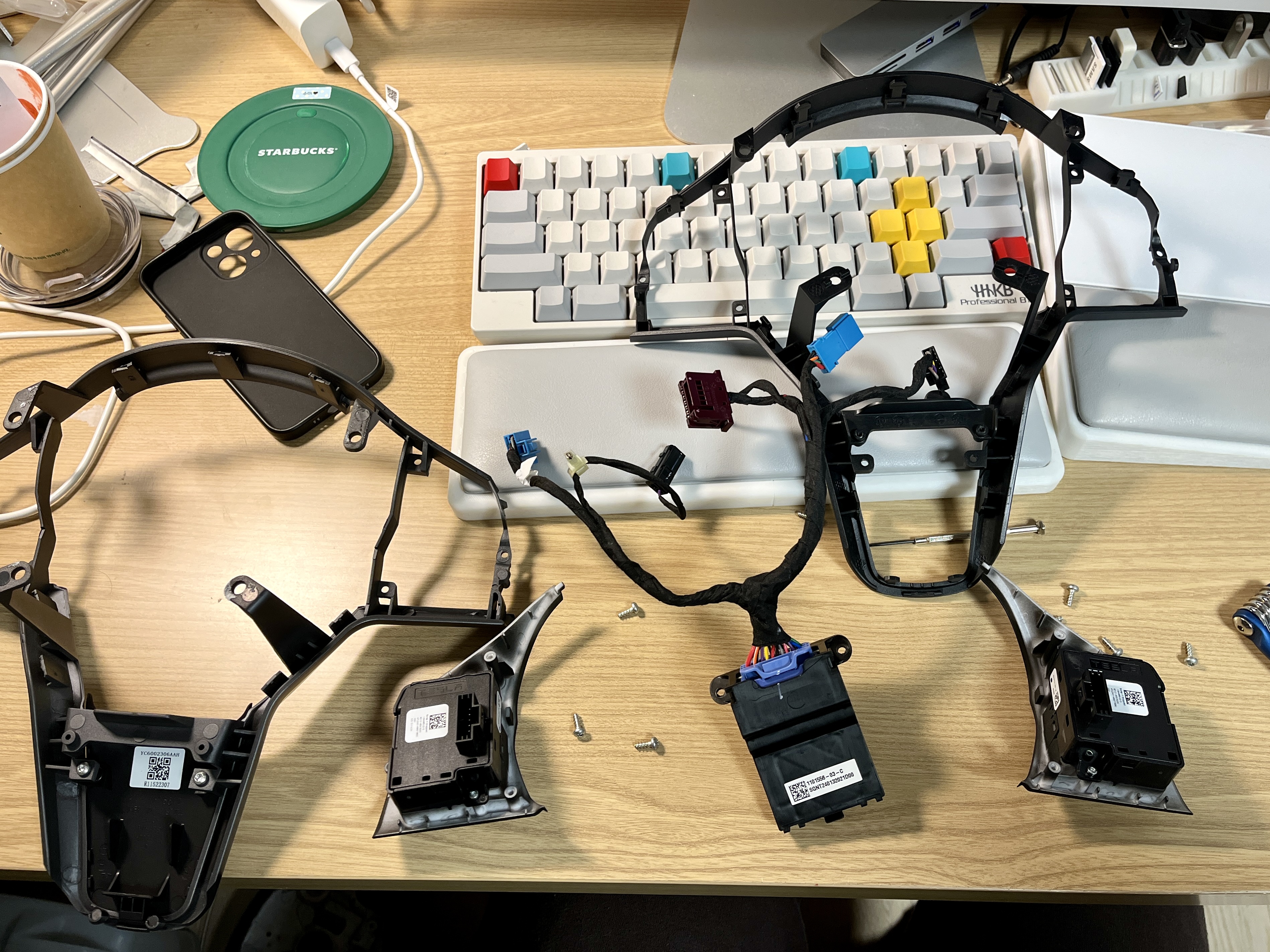순정 핸들에 달린 스위치를 하나하나 분리해서 요크에 이식작업을 합니다.
