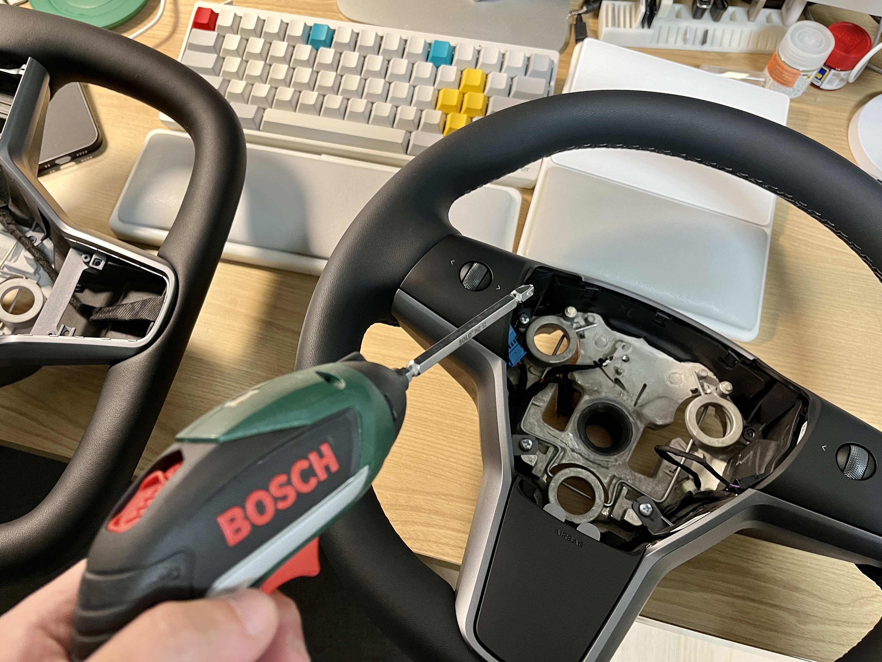 핸들 커버 하부에 콧구멍 같은 곳은 쑤셔서 에어백을 분리하고
