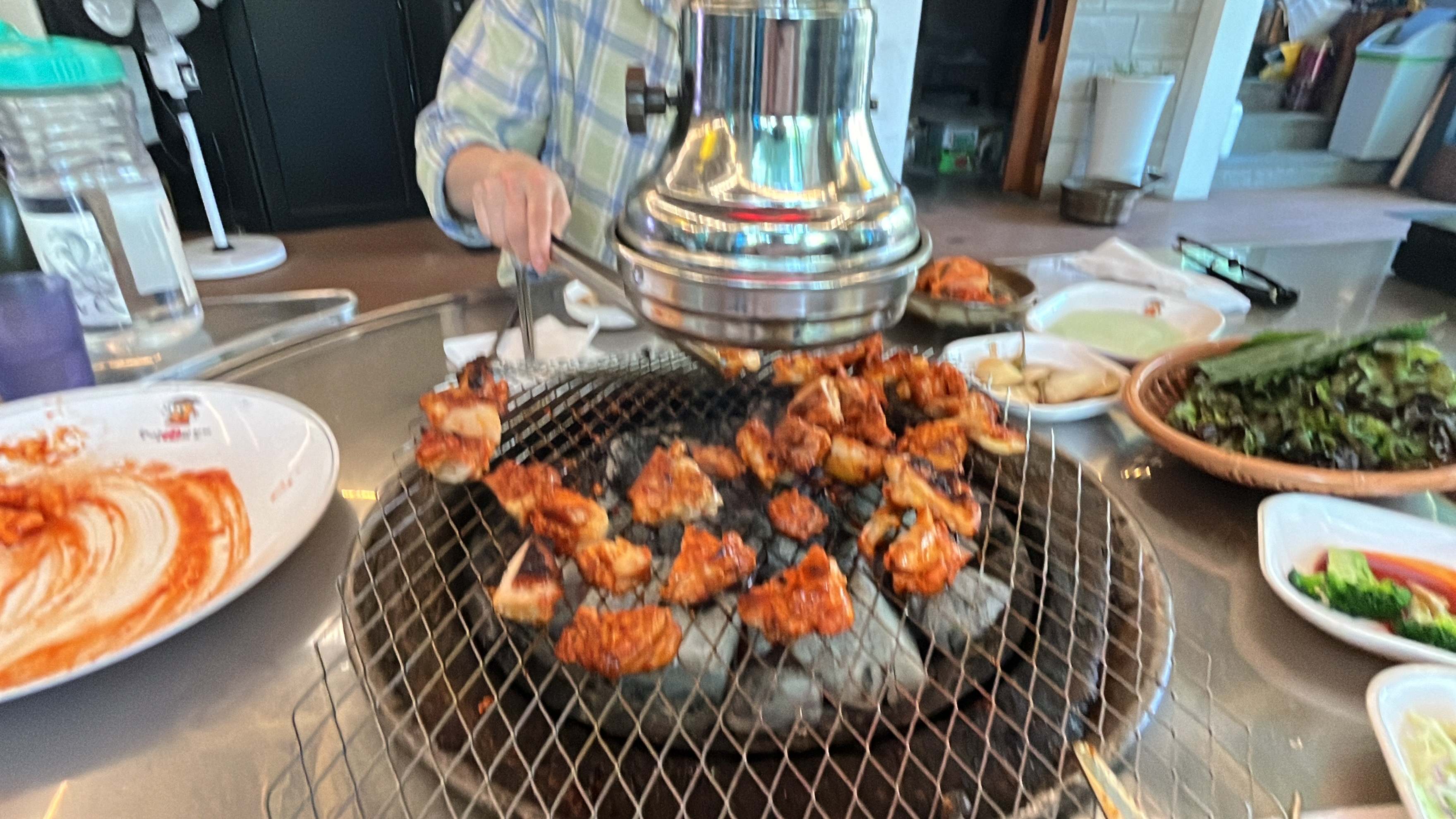 꼬치의 각도와 적정한 숯의 위치 그리고 회전속도 등..